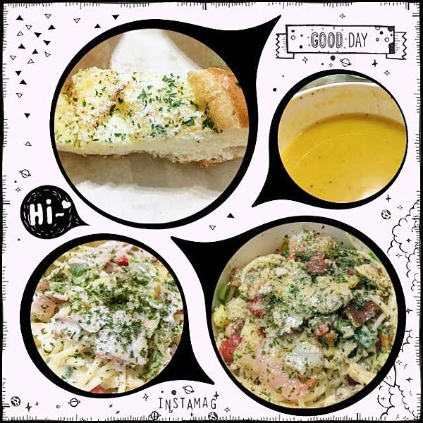 丫包覺得義大利麵、湯品的份量十足(除了麵包太好吃,覺得份量太少